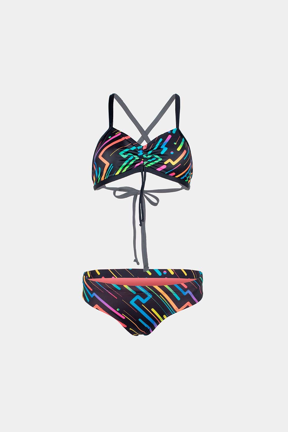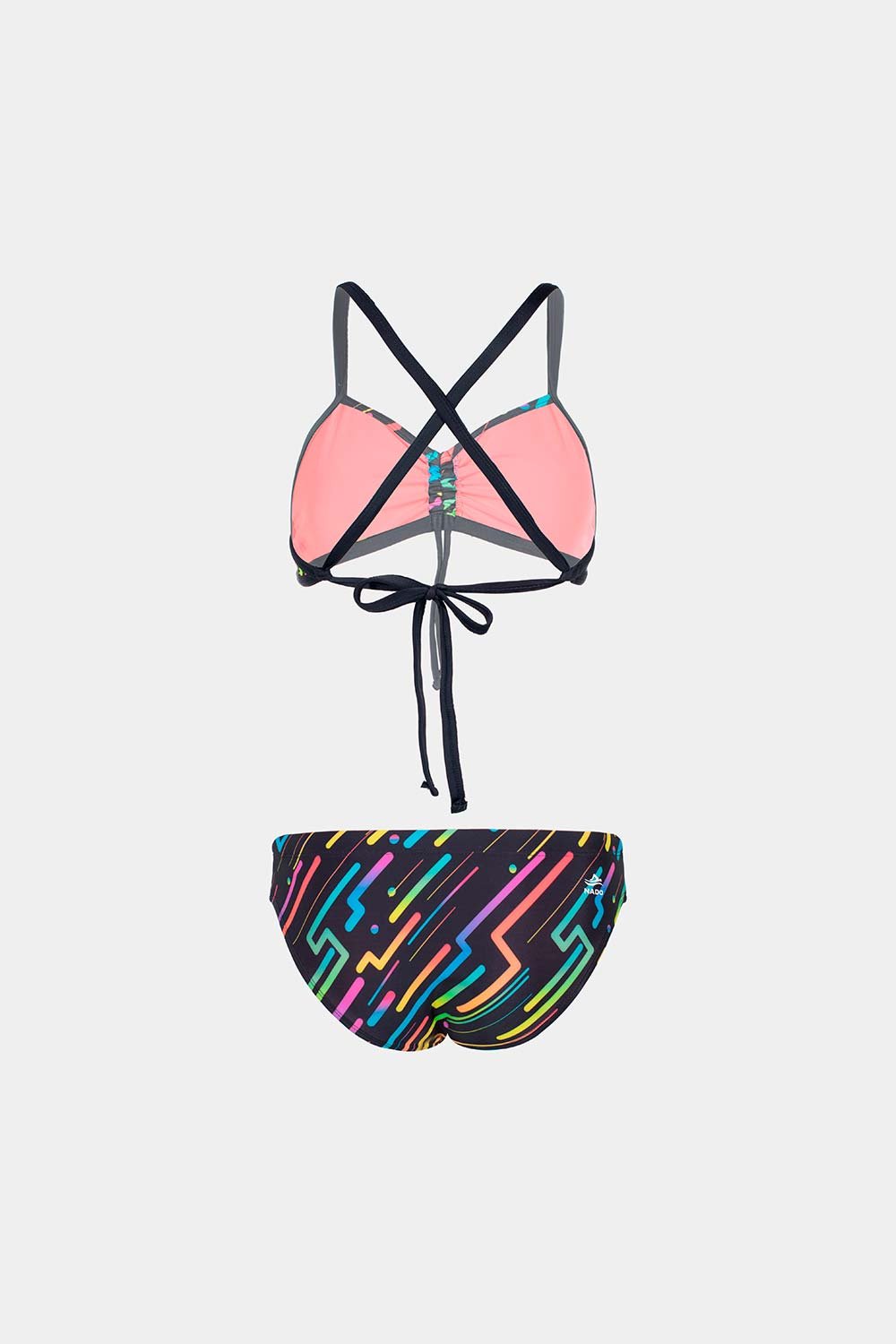 Este bikini de la marca NADO destaca por su diseño dinámico y moderno, ideal para mujeres activas que buscan estilo, comodidad y funcionalidad en sus actividades acuáticas.