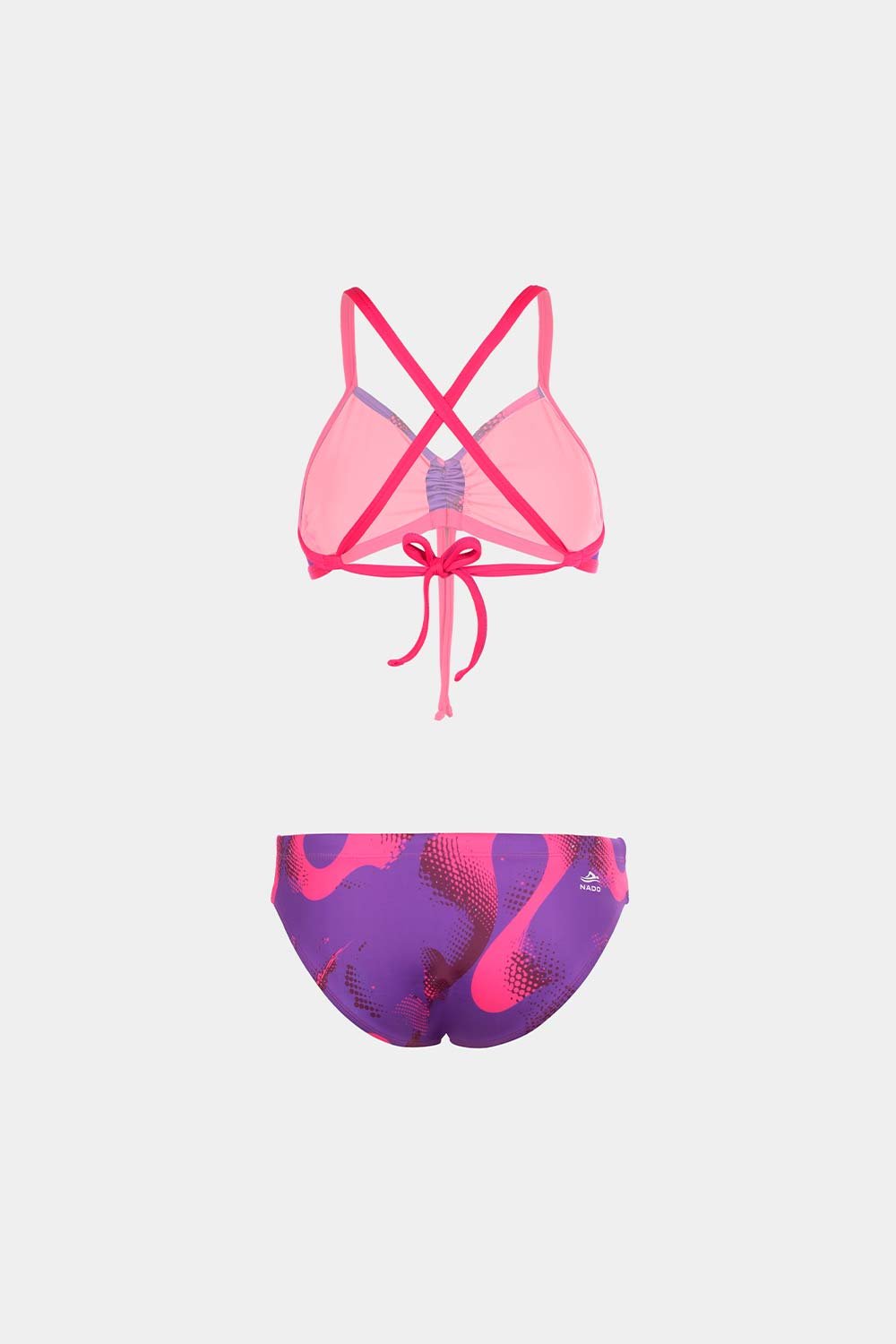 Este bikini de la marca NADO destaca por su diseño dinámico y moderno, ideal para mujeres activas que buscan estilo, comodidad y funcionalidad en sus actividades acuáticas.