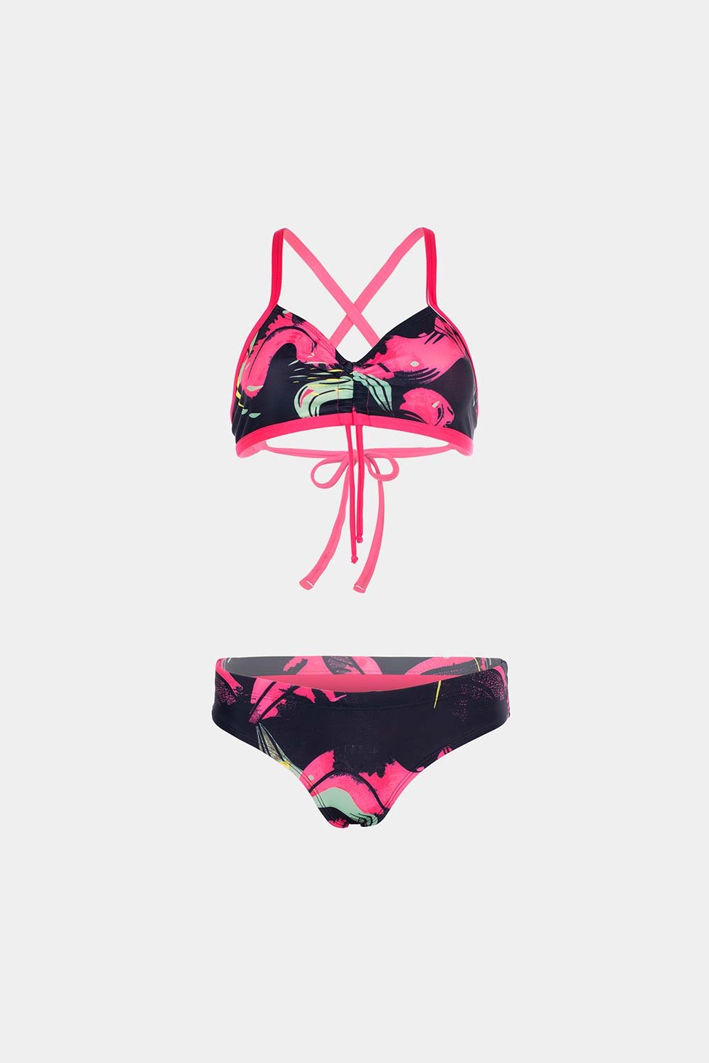 • La parte frontal con túnel fruncido central asegura mejor ajuste del busto, permitiendo que se mantenga firme durante las actividades acuáticas, sin deslizamientos ni incomodidades.