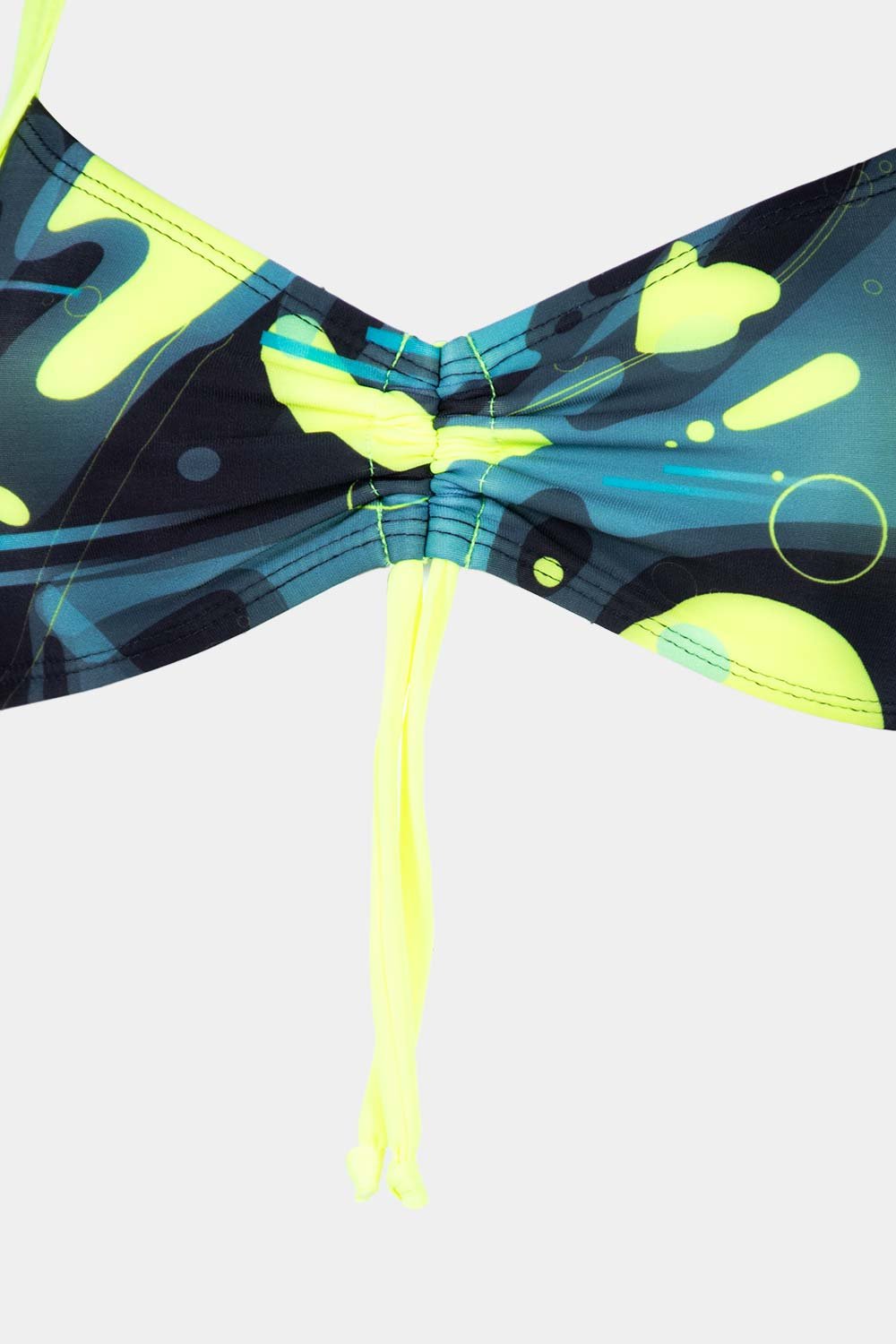 • La parte frontal con túnel fruncido central asegura mejor ajuste del busto, permitiendo que se mantenga firme durante las actividades acuáticas, sin deslizamientos ni incomodidades.