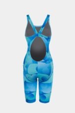 Su diseño ajustado, con largo hasta la rodilla, y espalda semiabierta con tirantes gruesos que proporcionan un ajuste firme, optimiza la hidrodinámica al reducir la resistencia al agua, permitiendo una patada más eficiente.