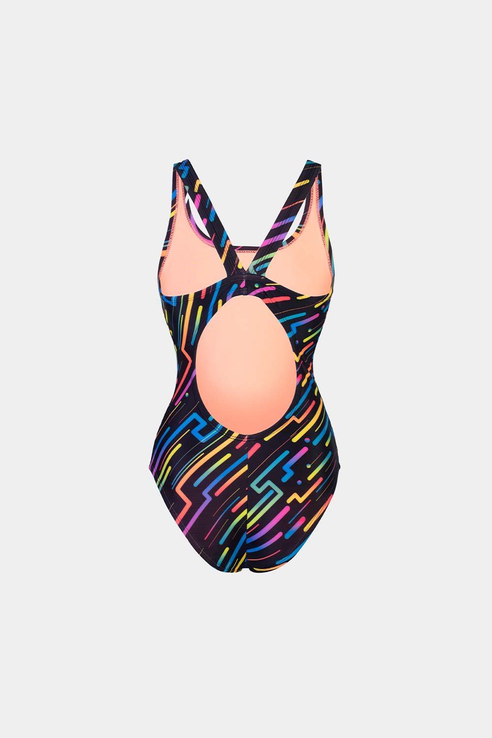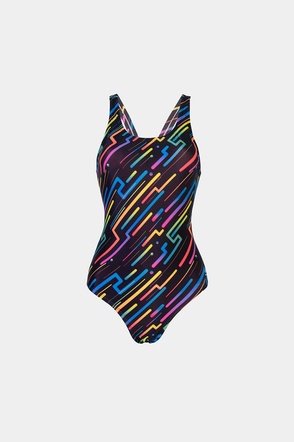 Este bañador tipo olímpico está diseñado para nadadoras que buscan comodidad, soporte y estilo en cada entrenamiento. Su corte clásico con espalda semiabierta y tirantes anchos cruzados garantiza un ajuste seguro que se mantiene en su lugar incluso durante las sesiones más intensas.