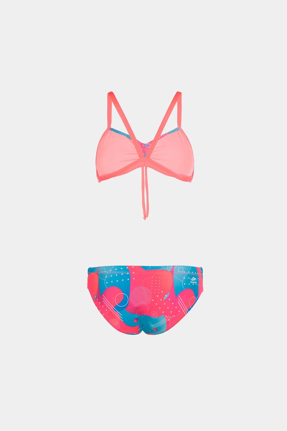 Este bikini de la marca NADO destaca por su diseño dinámico y moderno, ideal para mujeres activas que buscan estilo, comodidad y funcionalidad en sus actividades acuáticas.
