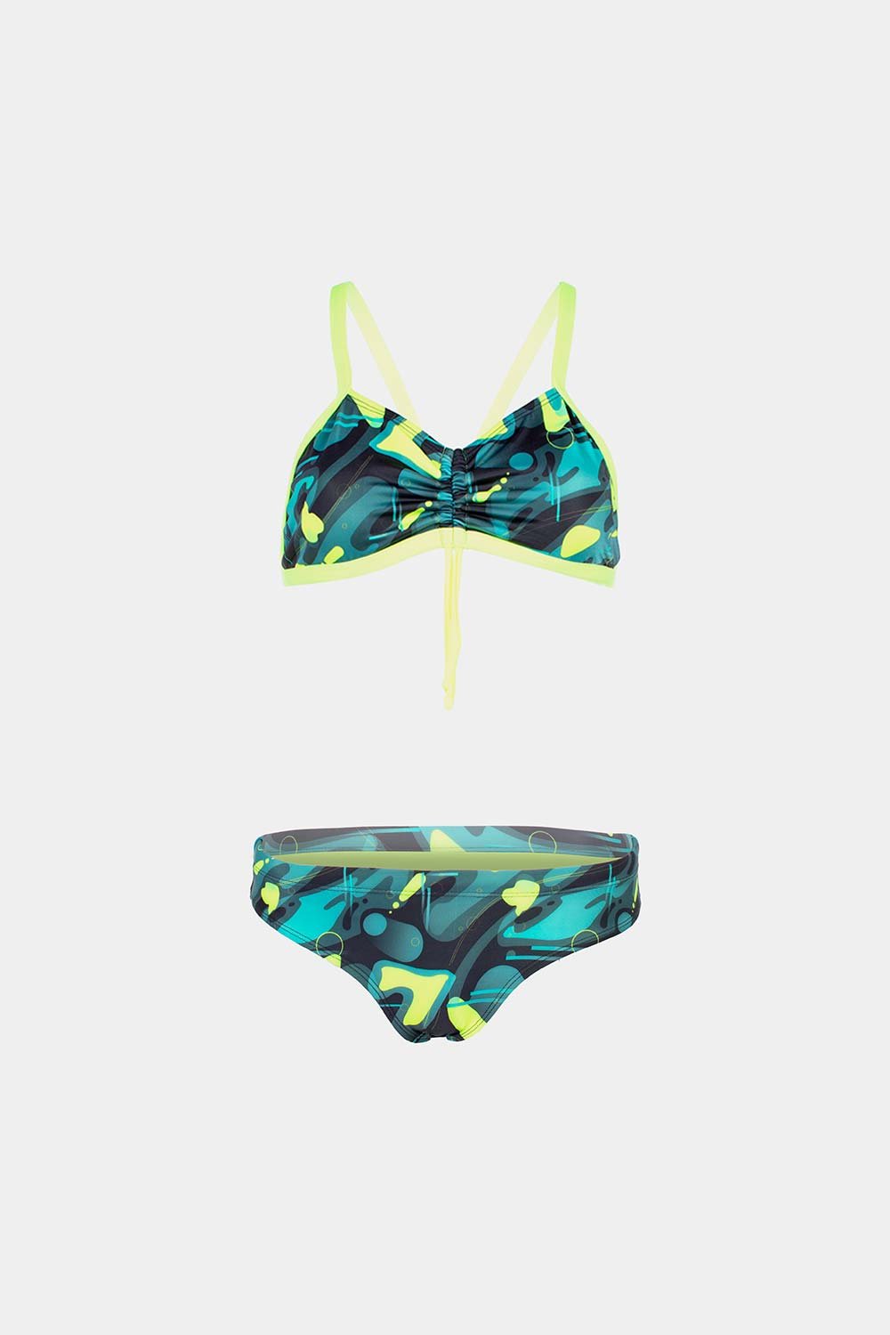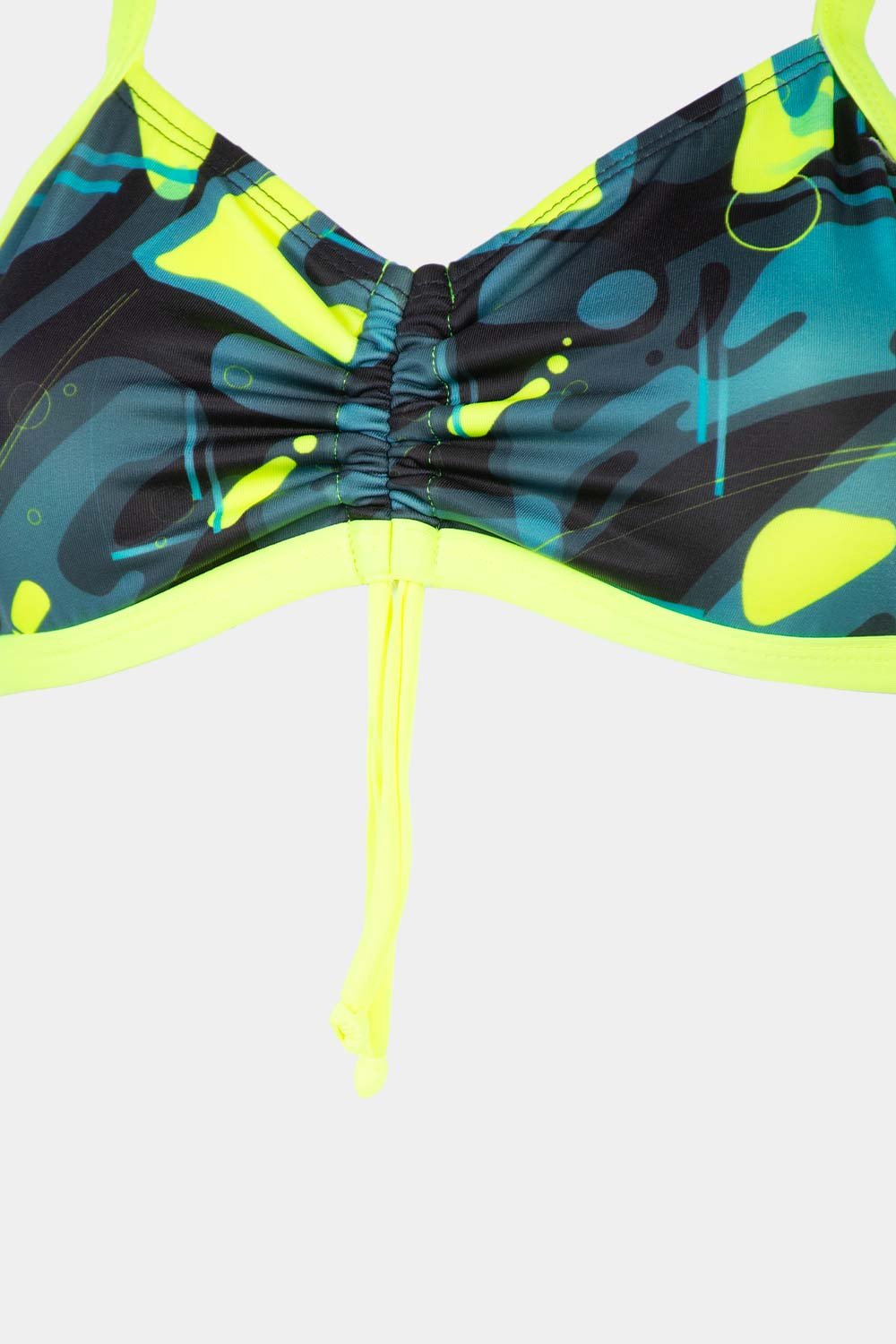 • La parte frontal con túnel fruncido central asegura mejor ajuste del busto, permitiendo que se mantenga firme durante las actividades acuáticas, sin deslizamientos ni incomodidades.